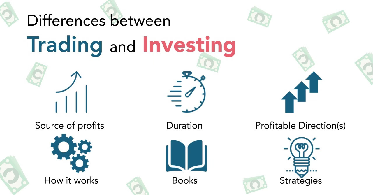 Qualsiasi persona o entità che stanzia un capitale con l'aspettativa di un rendimento a lungo termine è un investitore. Gli investimenti vengono effettuati con un fine di lucro, in un arco di tempo definito o al più delle volte prolungato. Gli investimenti possono generare reddito, creare un flusso di cassa positivo, il cosiddetto «cash flow» per pagare dividendi, affitti e altro ancora. Quando si fa trading invece lo si fa per ottenere dei flussi di cassa veloci, incassando o risarcendo il mercato alla fine della giornata, della settimana o nell’ipotesi più remota, del mese. A causa di tutte queste motivazioni di fondo, gli investimenti tendono ad essere più lunghi in termini di tempo. Di conseguenza, anche l’ammontare del capitale cambia. Il nostro approccio identifica già in partenza cosa è trading e cosa investimento. In base all’ammontare del capitale è possibile capire se questo denaro verrà utilizzato nel trading o nell’investimento. Solitamente, un buon modo per orientarsi è il seguente: qualora la somma investita fosse cospicua (in percentuale al totale del patrimonio, ndr) verrà utilizzata per uso investimento; qualora la somma investita fosse piccola verrà utilizzata per un ritorno immediato, uso trading.