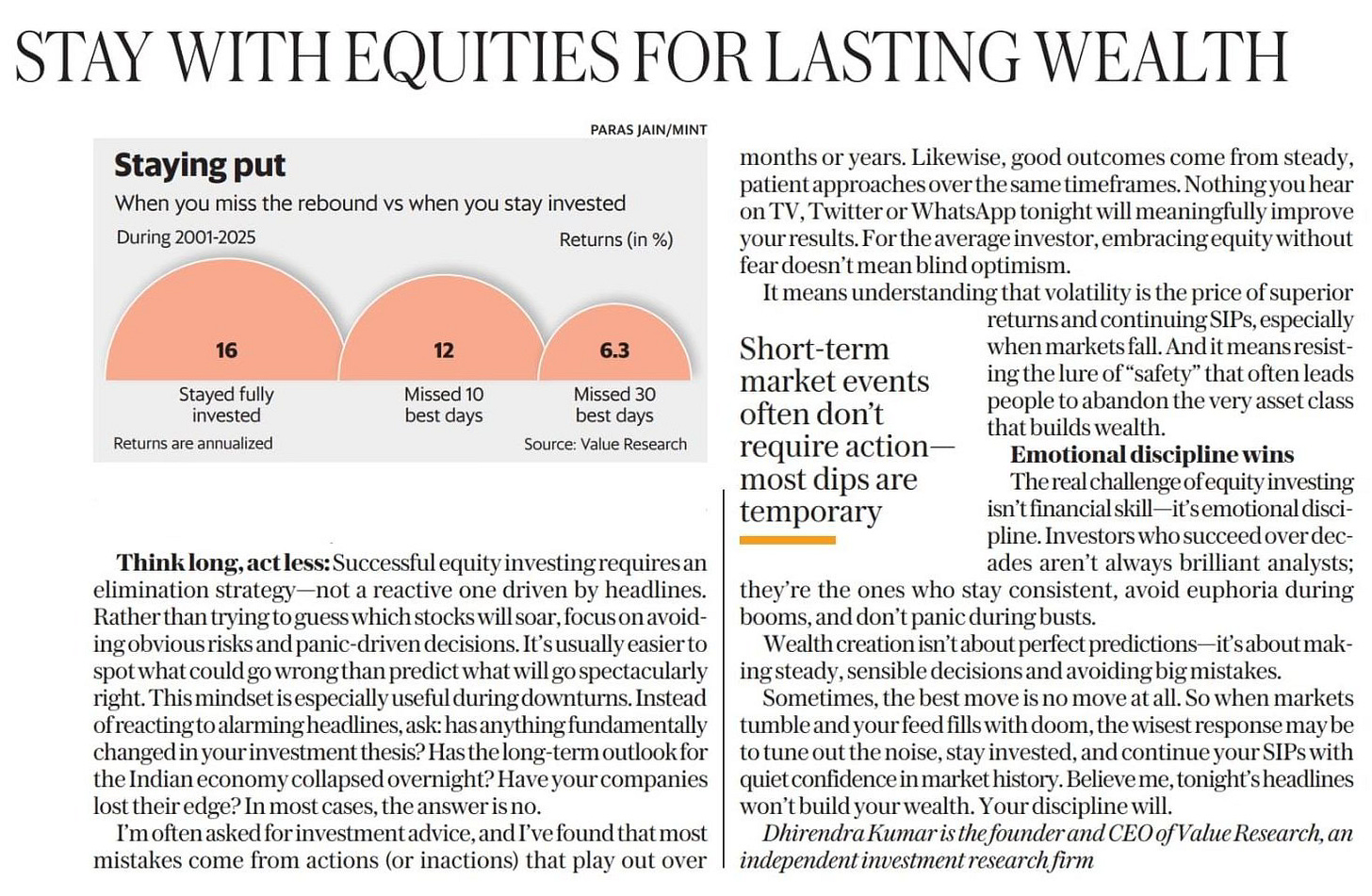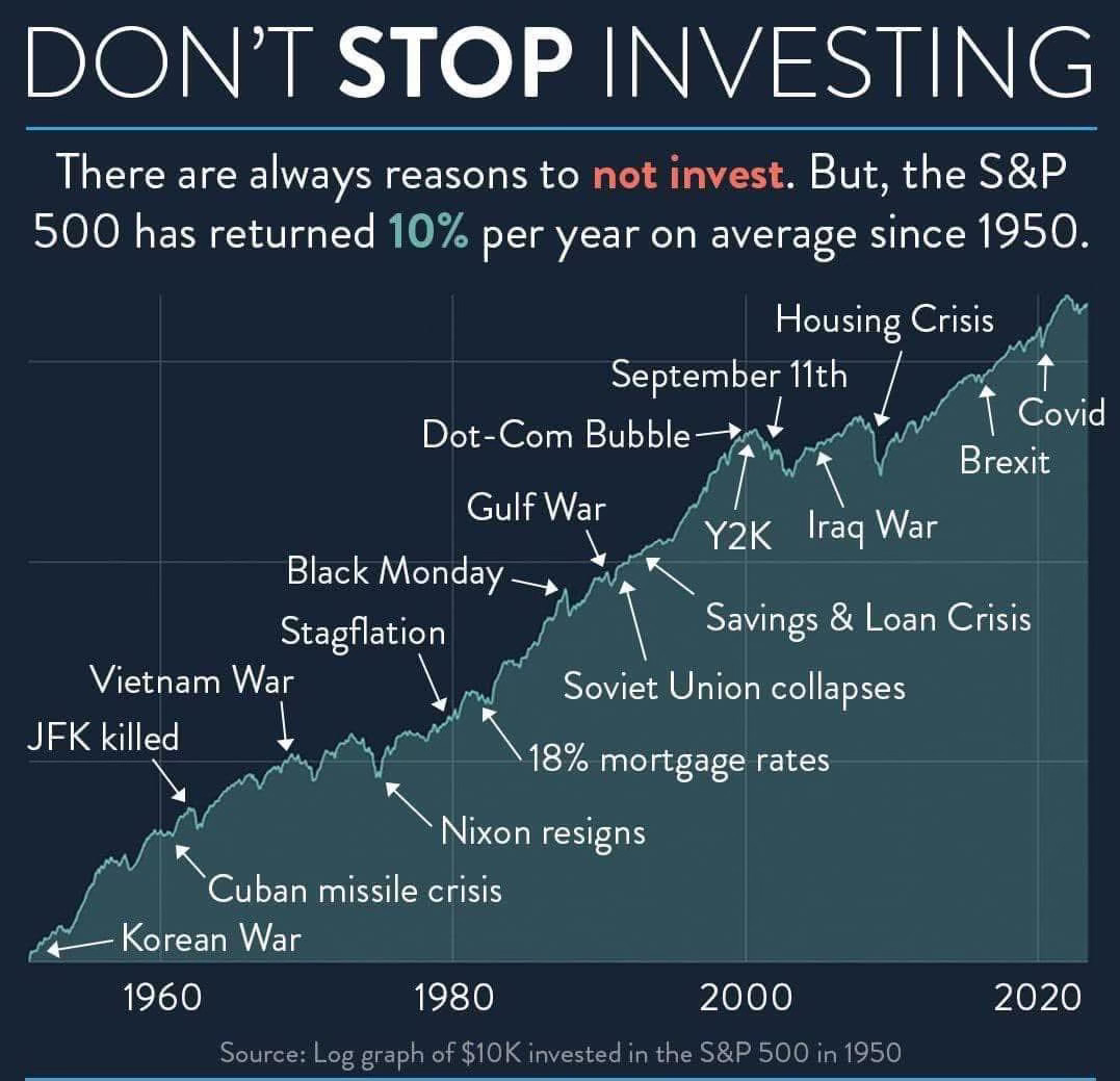 Truth is that market constantly offers good reasons to be pessimistic: economic crises, geopolitical tensions, recessions, disruptive technological innovations change rules of the game. But history shows that those who have continued to invest, ignoring the background noise, have been rewarded. Just as one pays rent every month or shops for groceries every week, investing should become an automatic habit, independent of the mood of the market. As long as transaction costs are low or zero, the best strategy is to buy regularly, without being paralyzed by emotions or news of the moment.