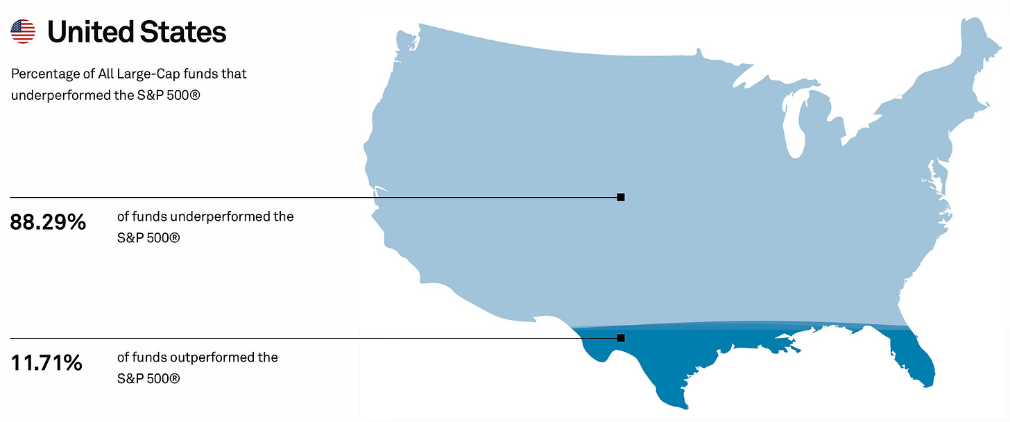 Come abbiamo osservato, esistono periodi di 10 anni, talvolta anche qualcosa in più, in cui un indice può offrire rendimenti nulli o deludenti. Questo accade quando valutazioni elevate, shock macroeconomici e lentezza dei policymaker si scontrano. Ma il punto è un altro: qual è l’orizzonte temporale reale dell’investitore? Mediamente, parliamo di 30 o 40 anni. In questo arco temporale, anche un decennio mediocre diventa un’oscillazione statistica, l’interesse composto non lavora in linea retta, ma lavora comunque. Ed è qui che entrano in gioco i numeri, quelli veri. I report SPIVA lo dimostrano ogni anno: la stragrande maggioranza dei fondi sotto-performa il benchmark di riferimento nel medio-lungo periodo. Non per incompetenza, ma per struttura. Per carità, esistono delle lungimiranti e affidabilissime case di gestione, menti illuminate che garantiscono da anni performance di tutto rispetto, ma parliamo di una cerchia ristretta in un mondo di sotto-performance. Costi, turnover, bias comportamentali, pressione commerciale. Tutti elementi che erodono rendimento. Allora perché le performance non arrivano?