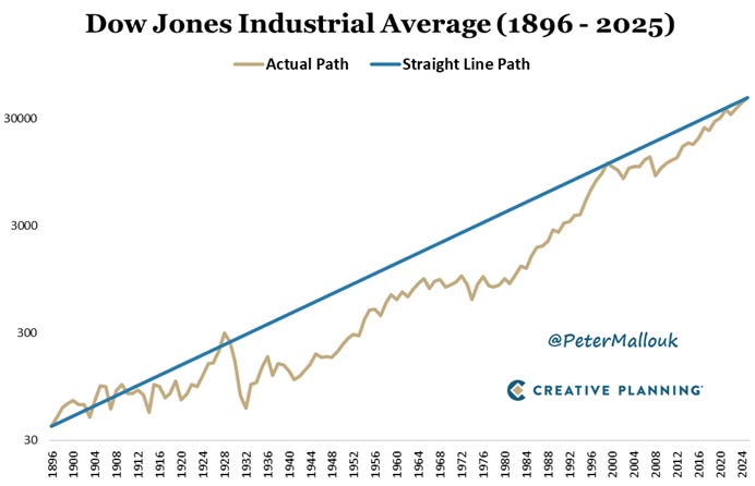 Con i dati che abbiamo a disposizione possiamo affermarlo senza esitazioni: l’investimento, inteso come generazione di rendimento reale nel lungo periodo, è un problema già risolto. Questo non significa che i mercati saliranno per sempre. Questa è una caricatura, un argomento stupido usato per screditare una tesi che non si vuole comprendere. I mercati scendono, lateralizzano, attraversano crisi, recessioni, shock geopolitici e fasi di panico. È sempre stato così e sempre sarà così. Ma il punto non è la traiettoria di breve o medio periodo, il punto è la struttura matematica dell’investimento azionario tramite indici di mercato.